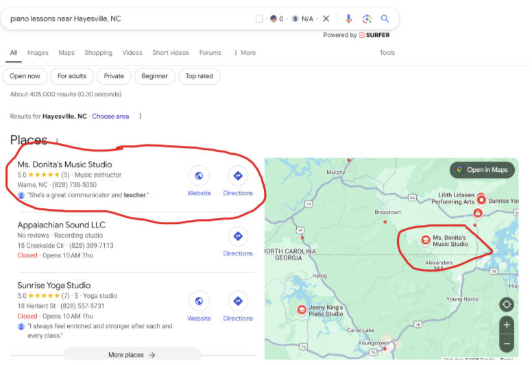 Outcome: Online visibility improved due to first position placements in local map searches and multiple top five placements in organic search results